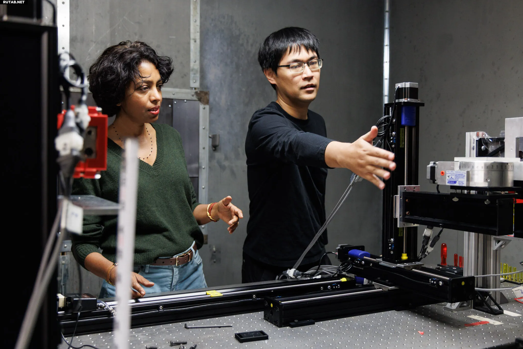 Профессор Мини Дас и исследователь Цзинчэн Юань на фоне созданной в университете рентгеновской установки