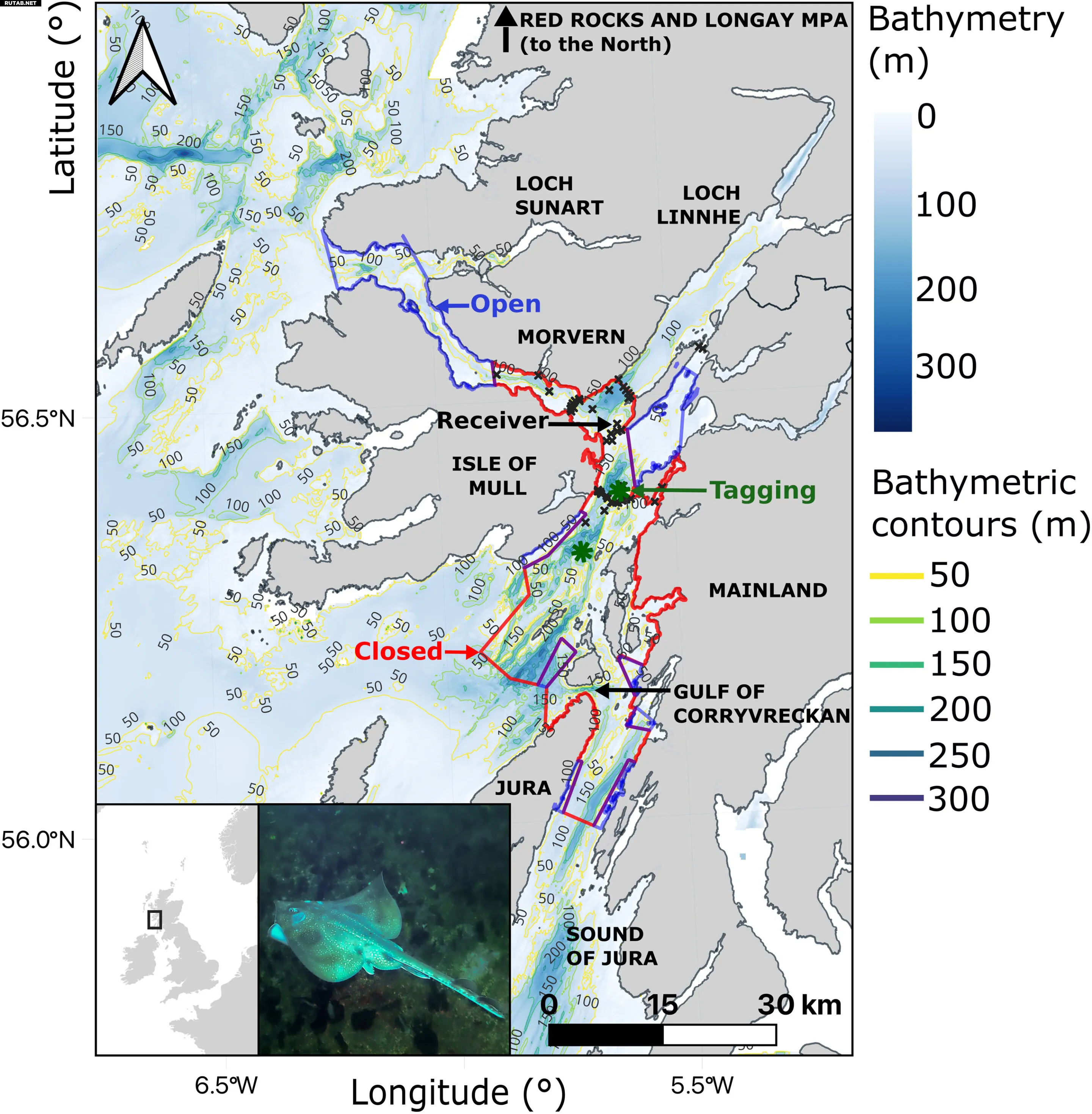 В этом исследовании команда применила методы к гигантским скатам в морской охраняемой зоне Лох-Сунарт до пролива Джура на западном побережье Шотландии. Им удалось отследить перемещения этих животных с беспрецедентной точностью и нанести их местоположения на карту морского дна.