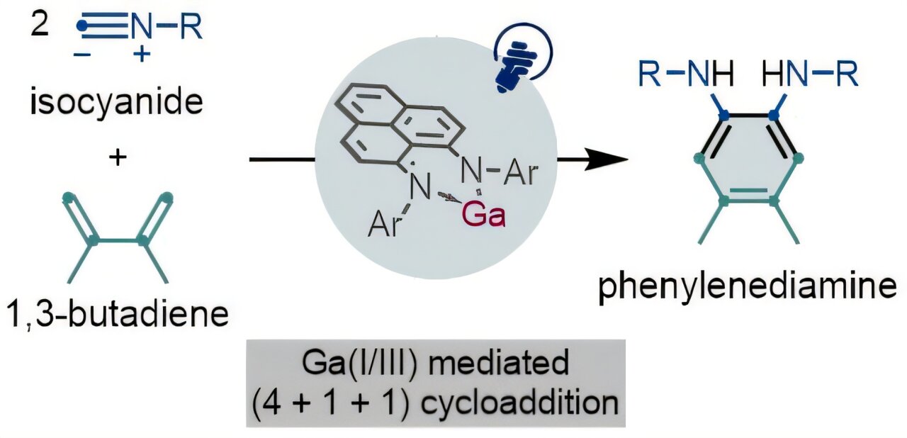 Больше информации: Synthesis of Phenylenediamines via (4+1+1) Photocycloaddition of 1,3-Dienes and Isocyanides Enabled by a Gallium(I)/(III) Redox: The Key Role of a Phenalenyl-Based Ligand, Journal of the American Chemical Society (2025). DOI: 10.1021/jacs.5c15802
