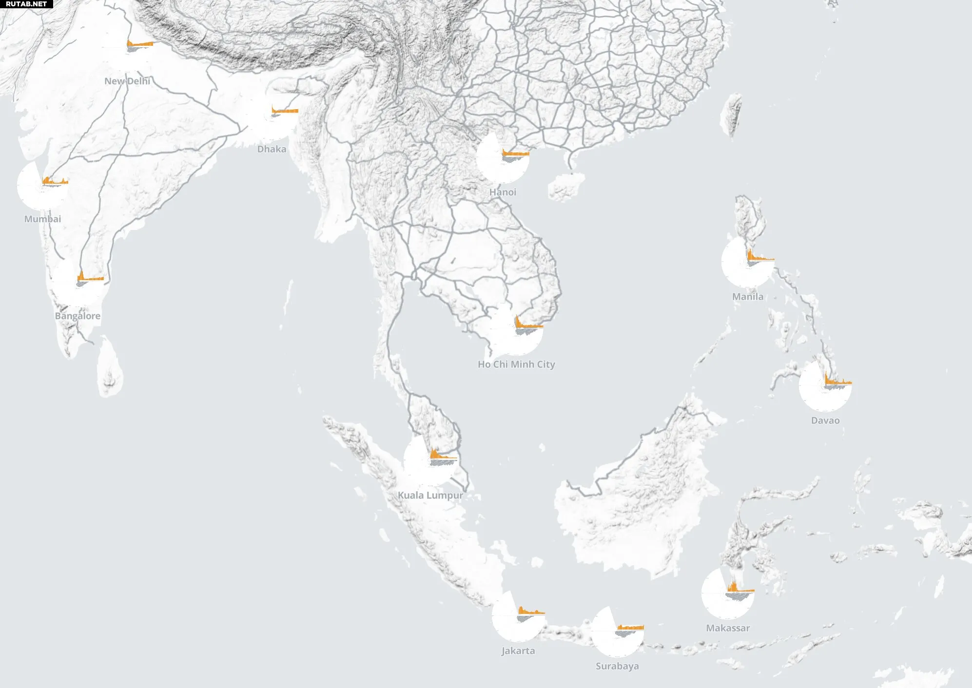 На этой визуализации показаны города Азии, Африки и Латинской Америки, в которых проживает 650 миллионов человек. Автор: Complexity Science Hub