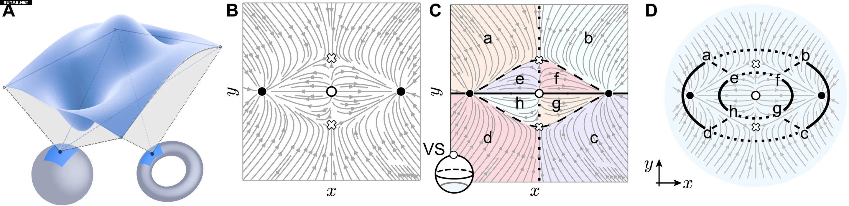 Исследователи из Констанцского университета, ETH Zurich и CNR INO Trento представили новый подход к классификации нелинейных физических систем, используя аналогию с горным ландшафтом. В публикации в журнале Science Advances они описывают, как стабильные состояния системы можно представить как долины, а нестабильные — как горные хребты. «Потоковые линии», по которым система эволюционирует к равновесию, подобны пути дождевой капли, стекающей по склону.
