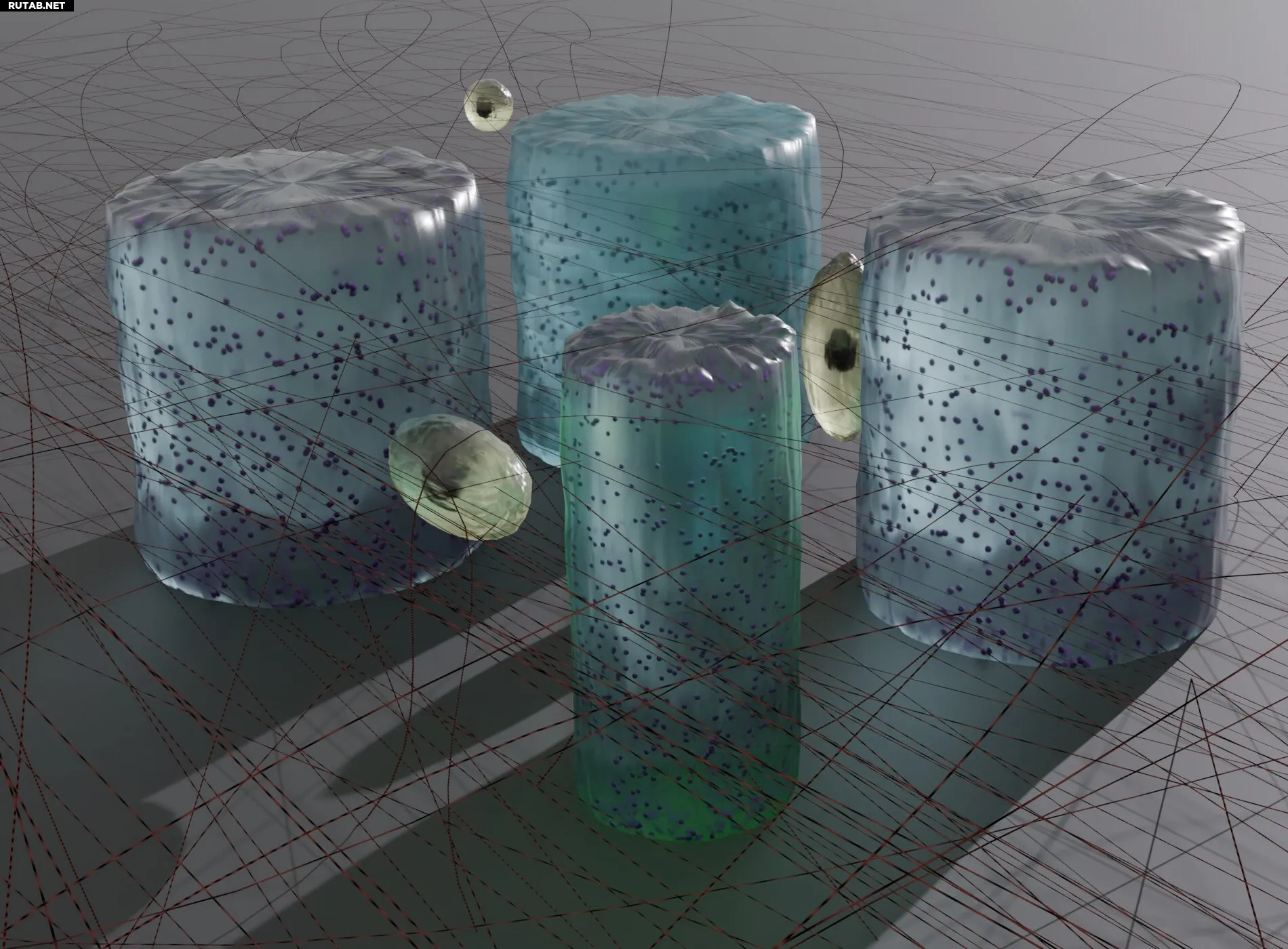 Светочувствительные микроструктуры гидрогеля в коллагеновой сети. Микроструктура на переднем плане освещена зеленым лазером, что заставляет её сокращаться. Это изменяет коллагеновую сеть и воздействует на окружающие клетки. Автор: Висенте Салас-Кирос.