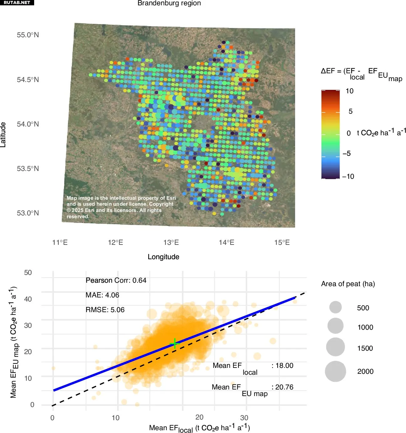 Сравнение карты выбросов парниковых газов с торфяников ЕС+ с региональными данными. Автор: Nature Communications (2025). DOI: 10.1038/s41467-025-65841-6