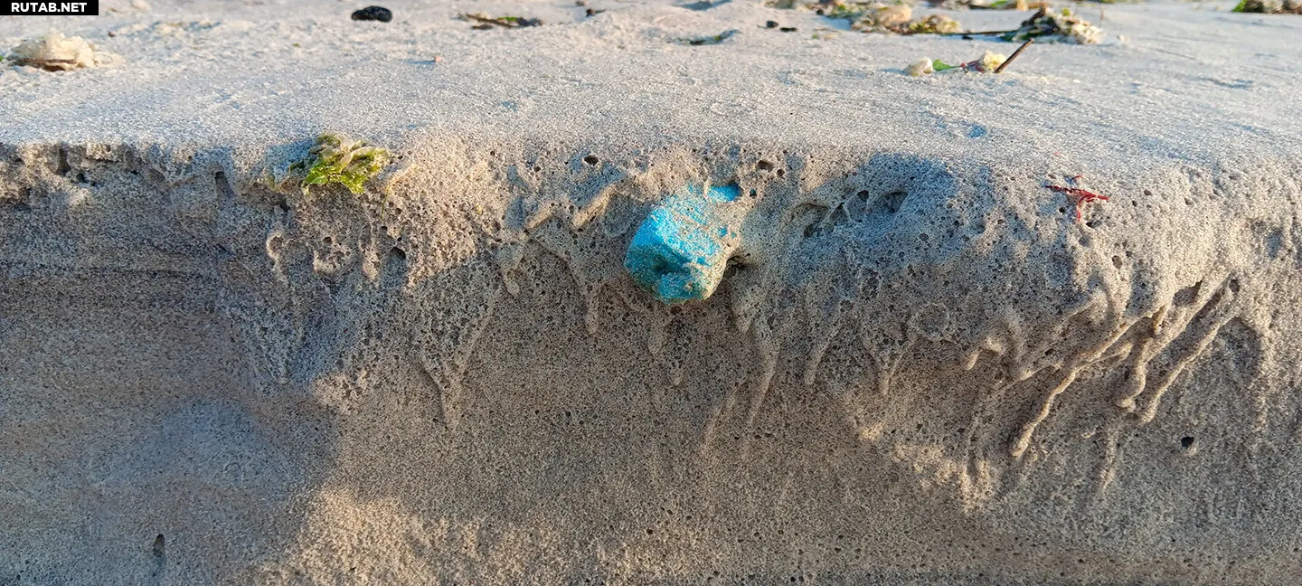 Пластиковые предметы, такие как эта часть плавательного поплавка (синяя), часто встречаются на береговой линии. Со временем они распадаются на микропластик, который проникает в океаны и влияет на распределение углерода вместе с органическим веществом. Автор: Луис Медина