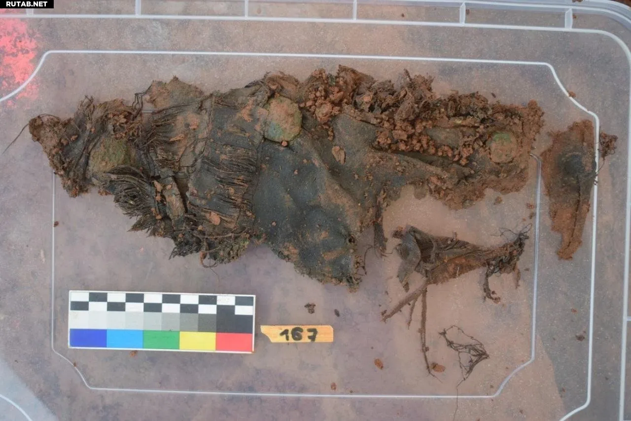 Несмотря на состояние костей, текстиль и снаряжение сохранились очень хорошо. Среди находок — фрагменты шинелей, воинская фурнитура, личные вещи, серебряный карманный часы с изображением собаки и золотой франк, отчеканенный в 1854 году. Деталь ножен сабли позволяет предположить, что среди павших мог быть унтер-офицер.