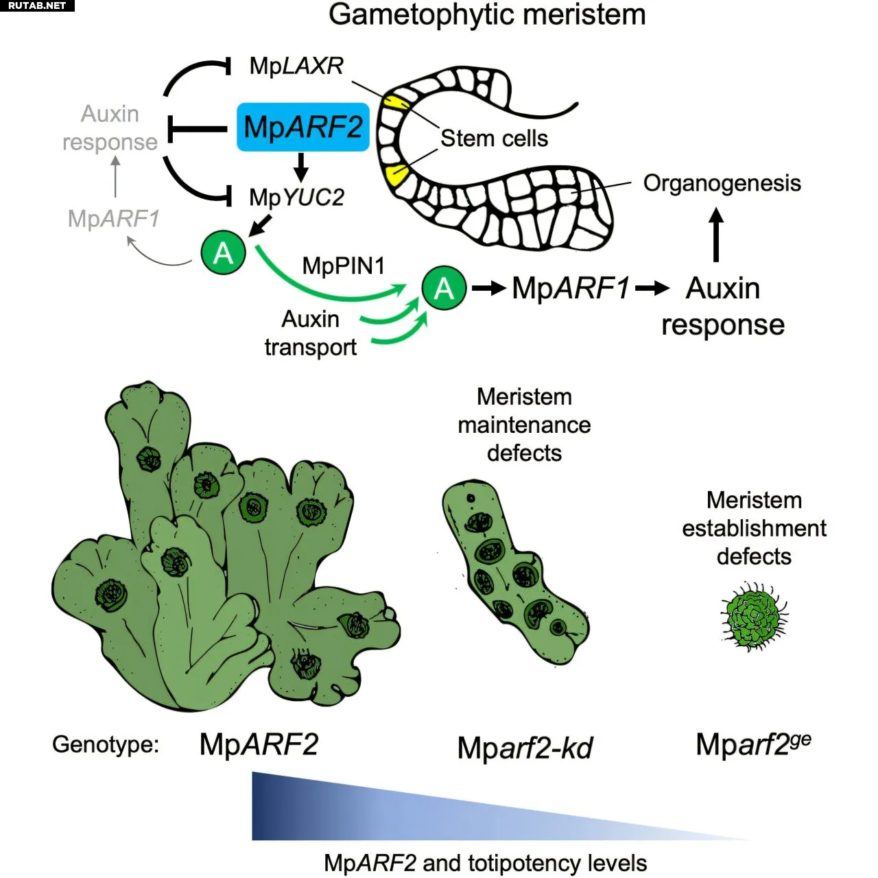 По словам ученых, MpARF2 создает защитную зону внутри растения, где рост может безопасно координироваться, защищая стволовые клетки от сигналов, которые в противном случае способствовали бы их дифференцировке.