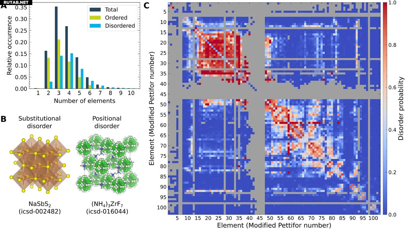 Визуализация материалов с беспорядком в базе данных неорганических кристаллических структур (ICSD). Автор: Advanced Materials (2025).