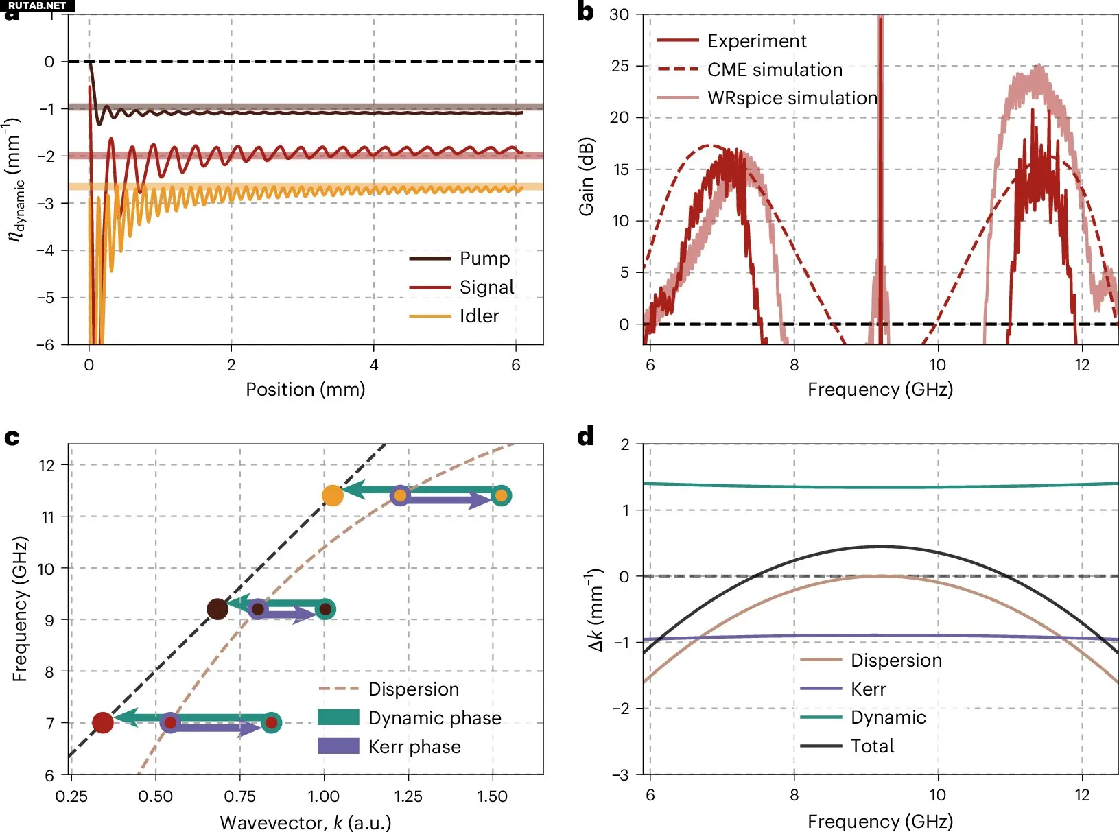 Параметрическое усиление и изоляция в TWPAI. Автор: Nature Electronics (2025). DOI: 10.1038/s41928-025-01489-w