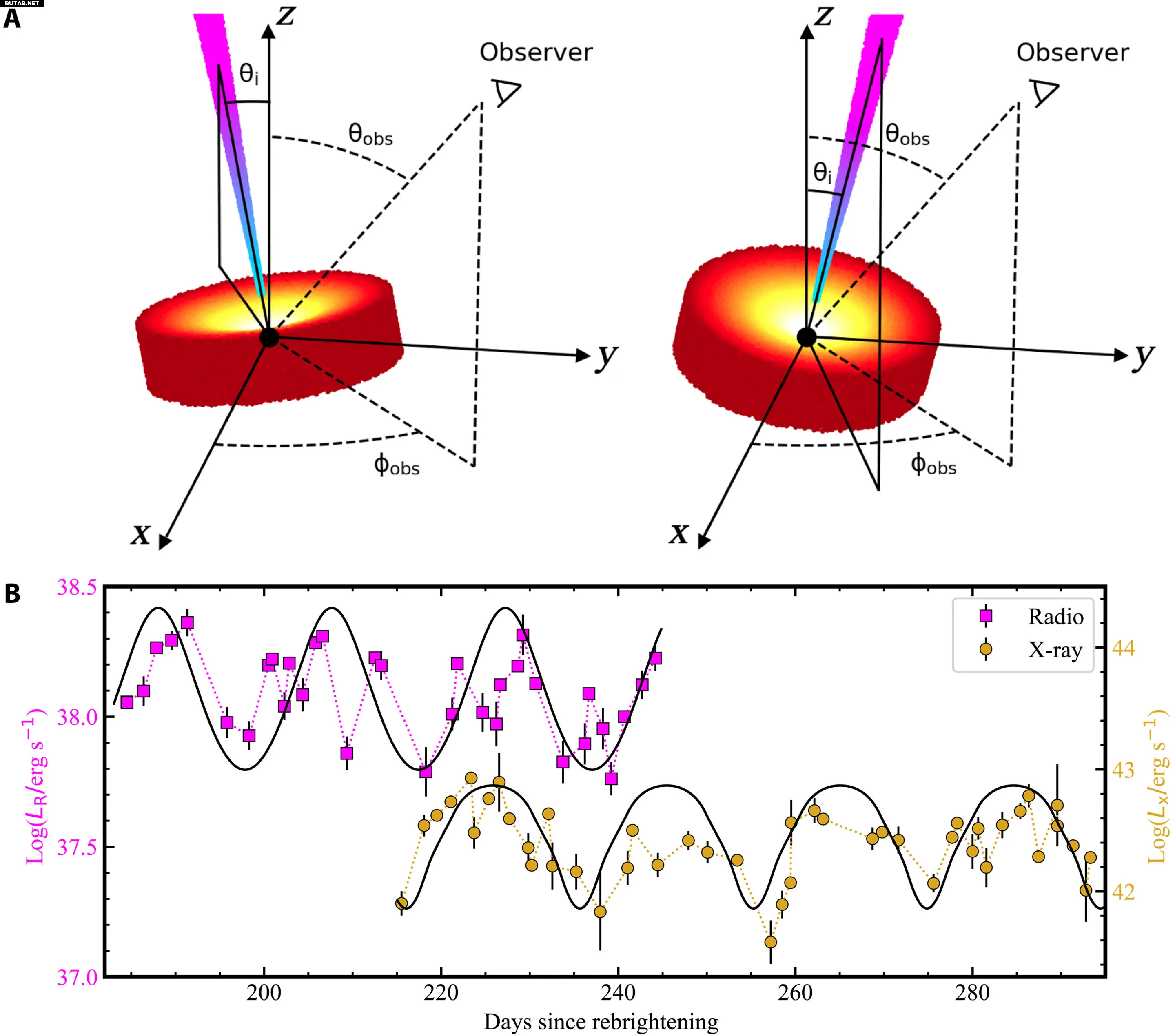 Анализируя ритмичные изменения в рентгеновском и радиоизлучении от этого события, ученые обнаружили, что диск и джет синхронно «колеблются», повторяя цикл каждые 20 дней.