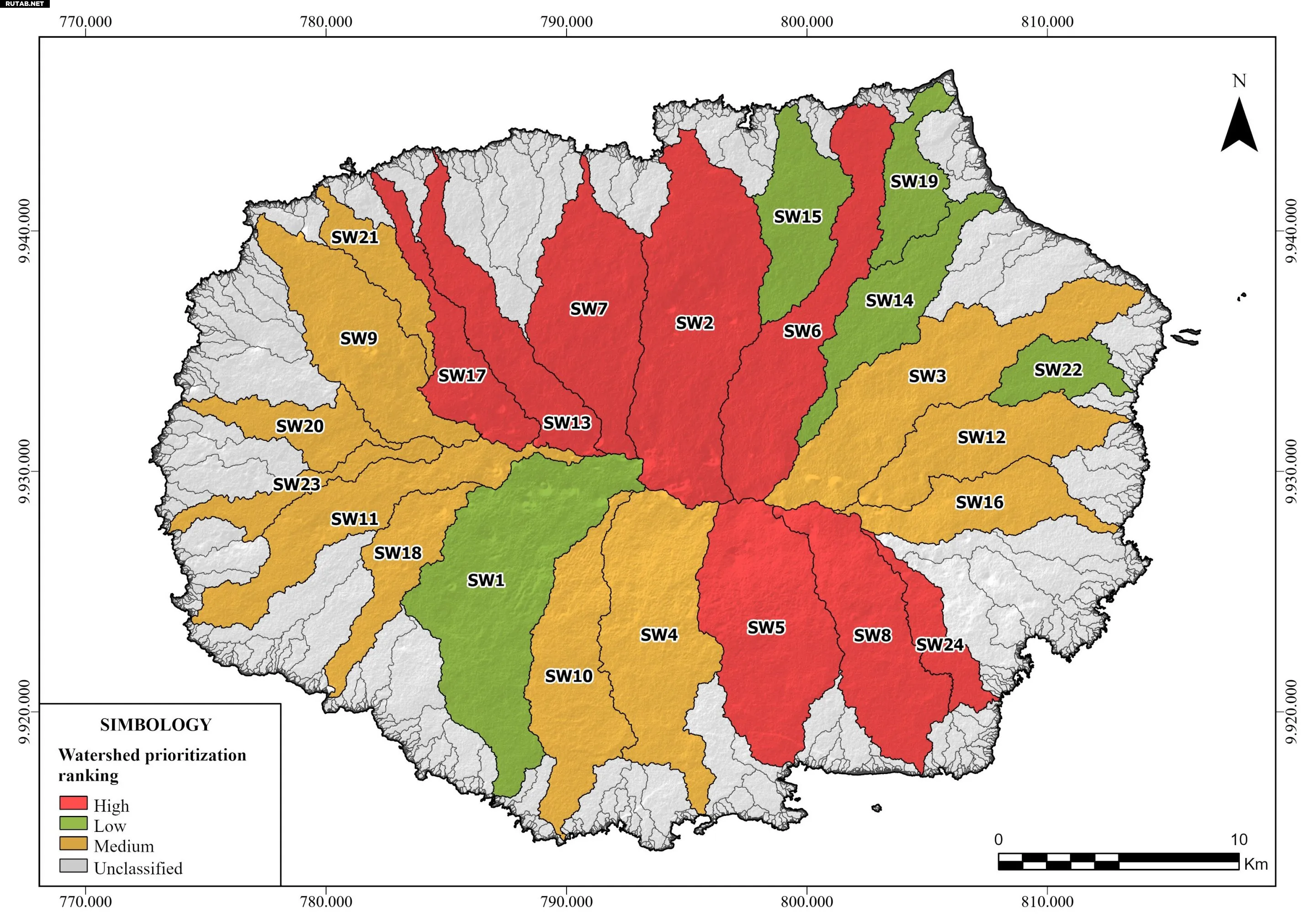 Ранжирование приоритетности суб-водосборов острова Санта-Крус. Автор: Environmental and Sustainability Indicators (2025). DOI: 10.1016/j.indic.2025.100843