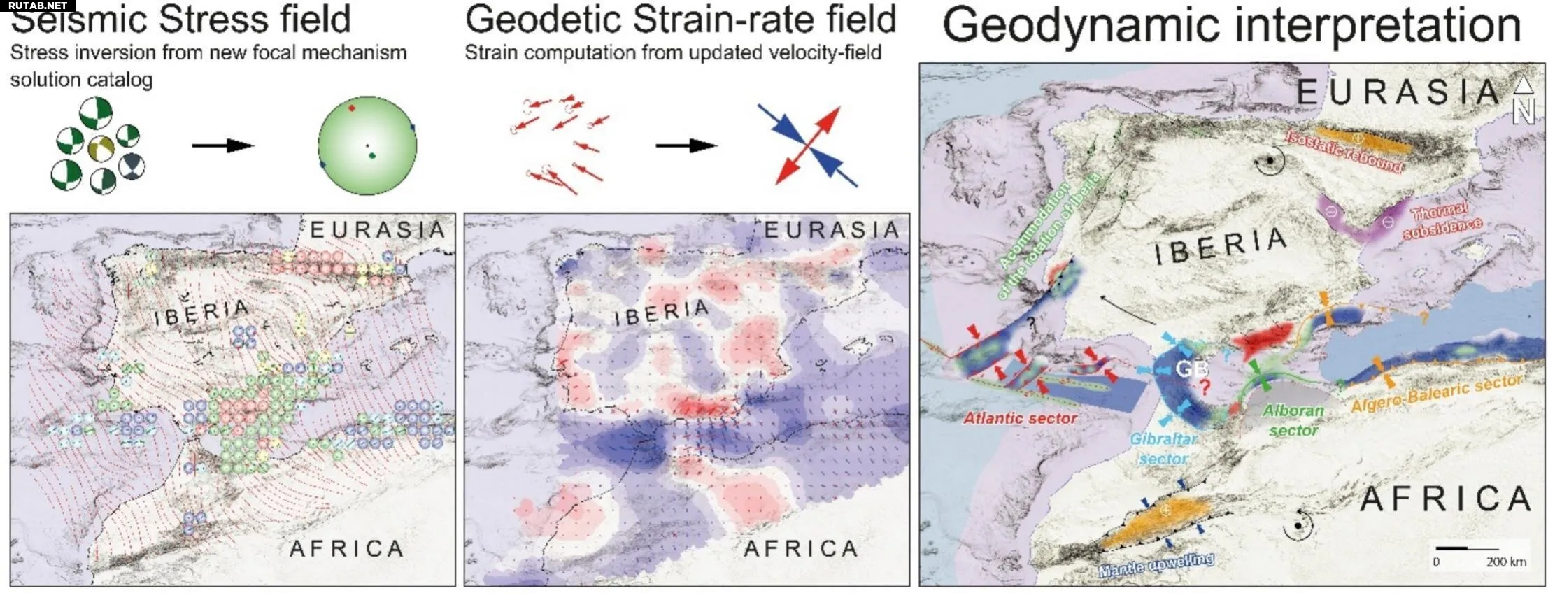 Новое исследование, проведённое учёными из Университета Страны Басков, показало, что Иберийский полуостров (территория Испании и Португалии) медленно вращается по часовой стрелке. Это движение связано со сложным взаимодействием Евразийской и Африканской тектонических плит в районе западного Средиземноморья.