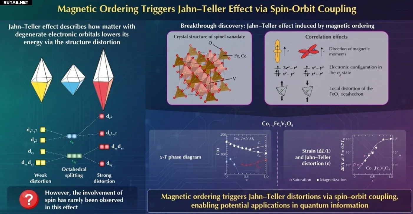 В новом исследовании команда под руководством профессора Такуро Кацуфудзи из Университета Васэда обнаружила, что в соединениях типа шпинели Co₁₋ₓFeₓV₂O₄ магнитное упорядочение индуцирует эффект Яна-Теллера, причём спин-орбитальное взаимодействие играет решающую роль. Результаты были опубликованы в журнале Physical Review Letters 29 октября 2025 года.
