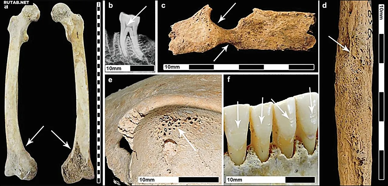 Признаки стресса на некоторых скелетах взрослых женщин римского периода. Автор: Ребекка Питт, Antiquity (2025).