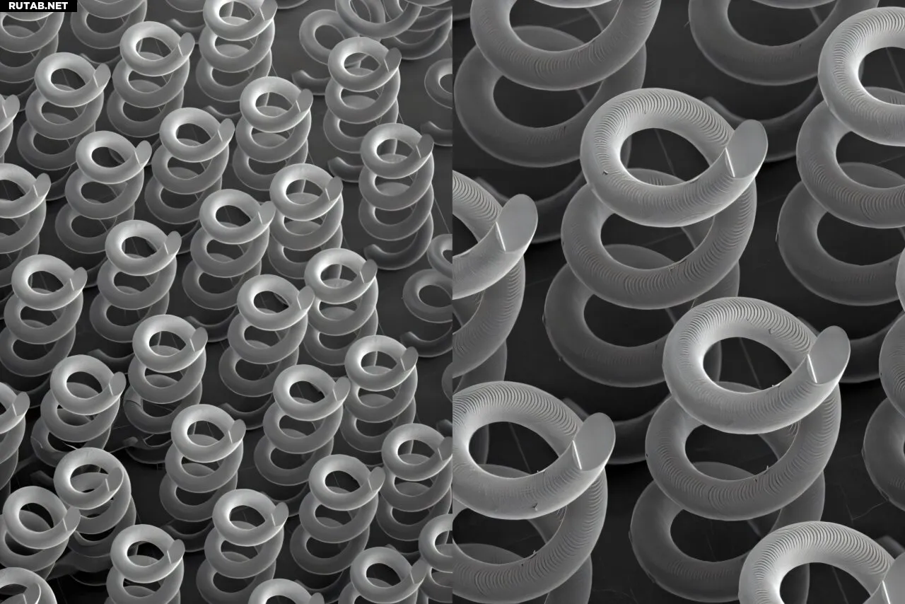 Изображение массивов спиралей, полученное с помощью сканирующего электронного микроскопа. Автор: Сонъюнь Гу