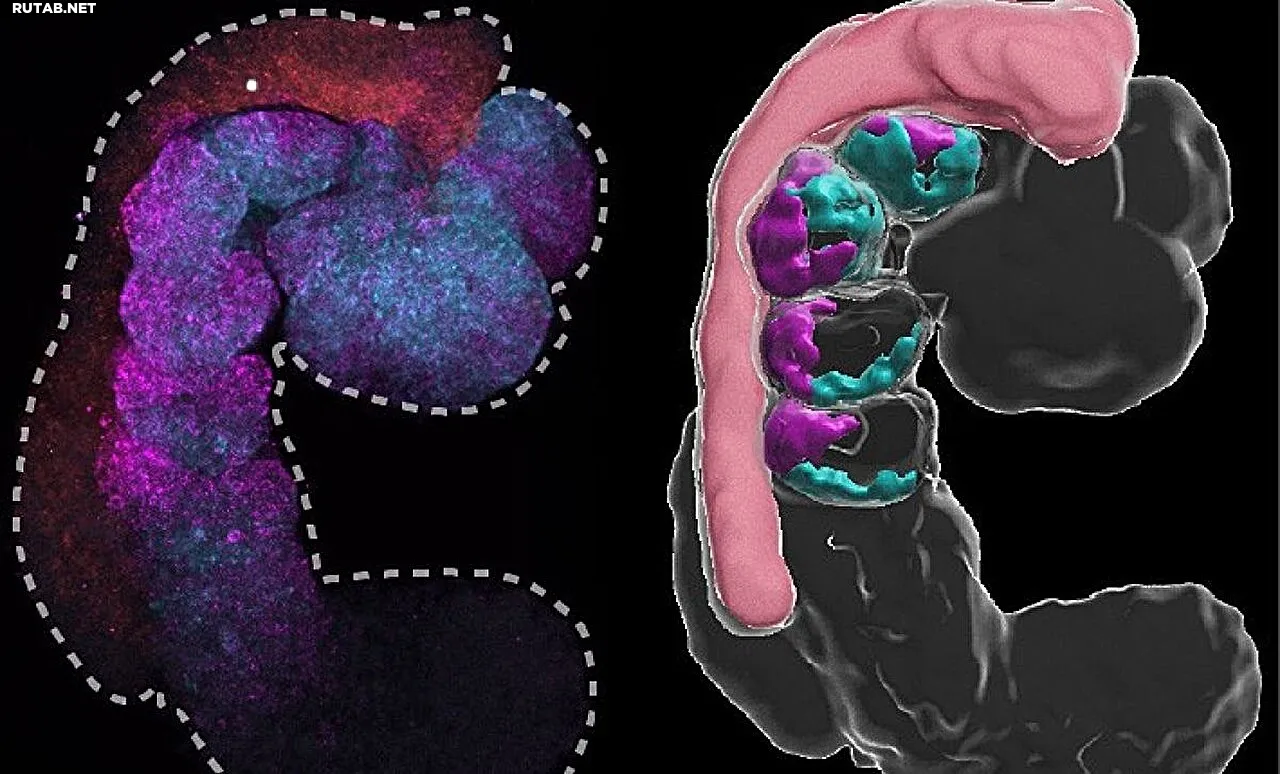 Модель, описанная в журнале Nature Cell Biology, самоорганизуется примерно в 10 сомитов рядом с одной нервной трубкой, имитируя аспекты эмбриона человека на 28–35 день после оплодотворения.