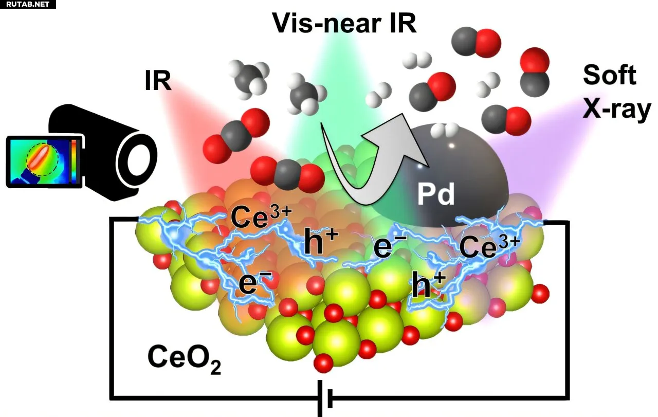 Традиционный процесс сухого риформинга метана (DRM) требует температур выше 800 °C и приводит к быстрой деактивации катализатора. Применение постоянного тока (DC) к катализатору, например, на основе палладия и оксида церия (Pd/CeO2), позволяет проводить реакцию при ~200 °C, но причина этого усиления оставалась неясной.