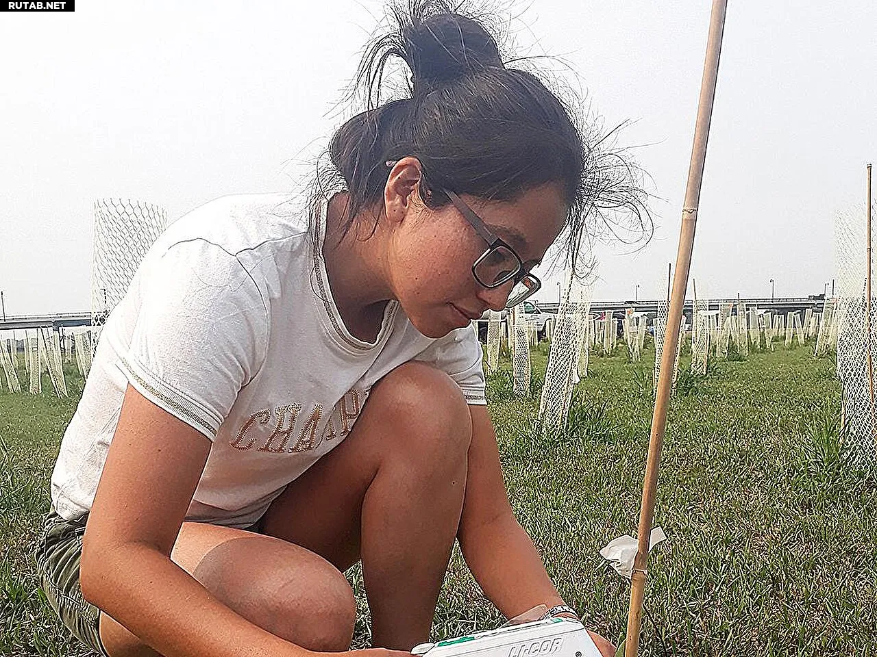 Мишель Завала-Паэс, ведущий автор исследования, собирает образцы листьев гибридного тополя. Автор: Penn State