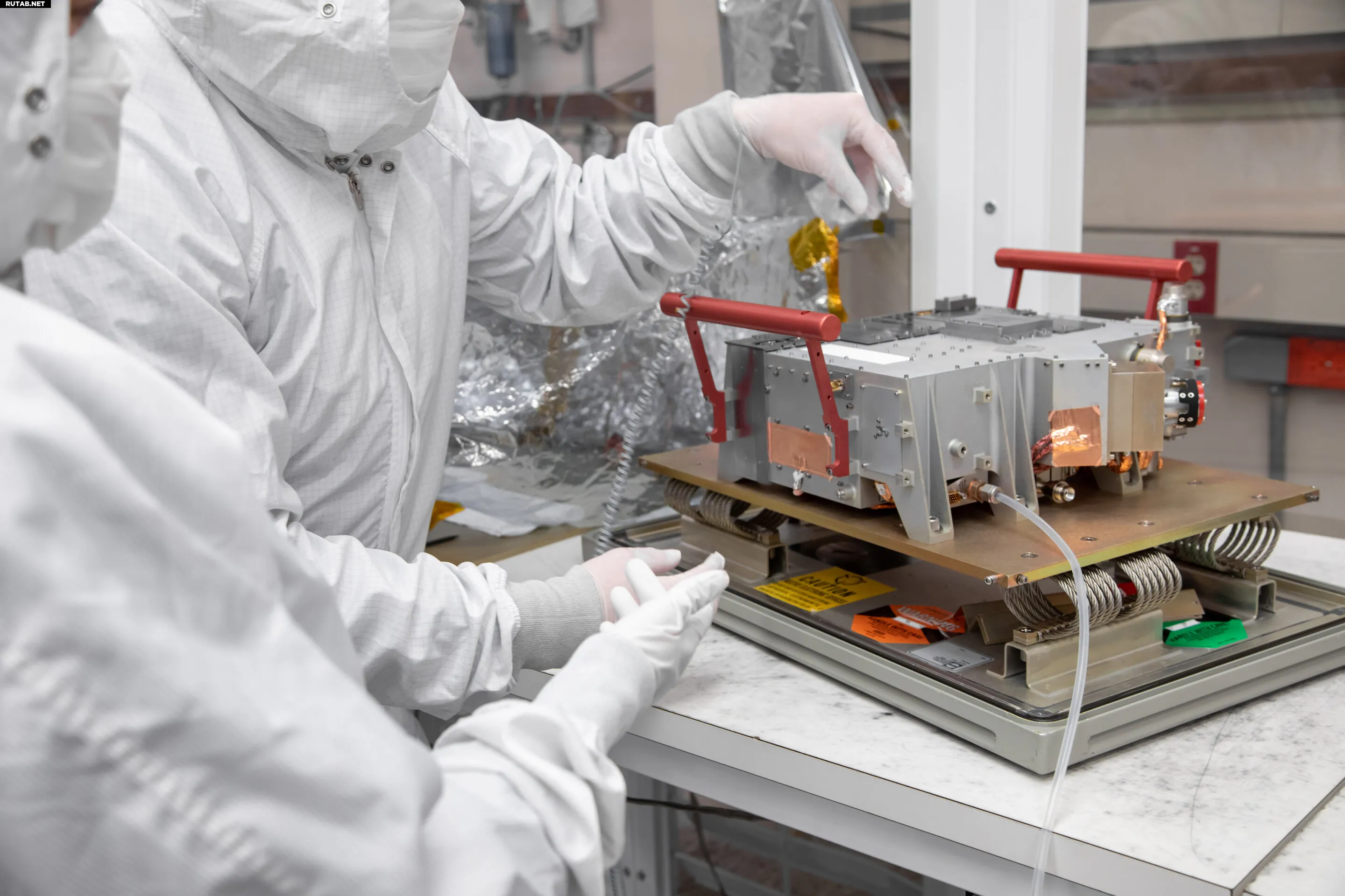 Инструмент UVS предназначен для оценки состава атмосферы и поверхности Европы. На фото: доктор Трейси Беккер (слева) и доктор Курт Ретерфорд (справа). Автор: Southwest Research Institute