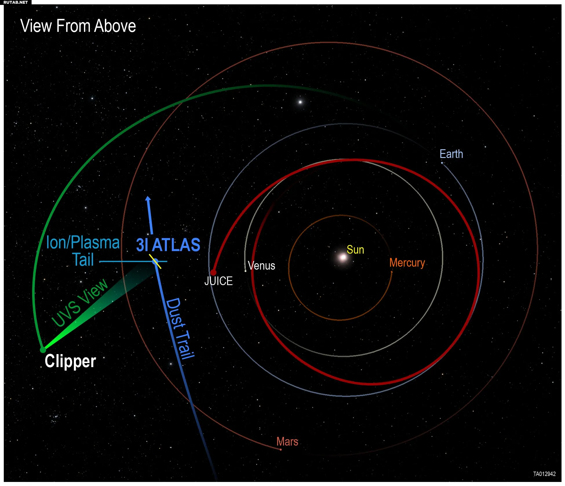 Ультрафиолетовый спектрограф (UVS) на борту космического аппарата NASA «Europa Clipper» провёл ценные наблюдения за межзвёздной кометой 3I/ATLAS. В июле 2025 года она стала третьим официально признанным межзвёздным объектом, вошедшим в нашу Солнечную систему.