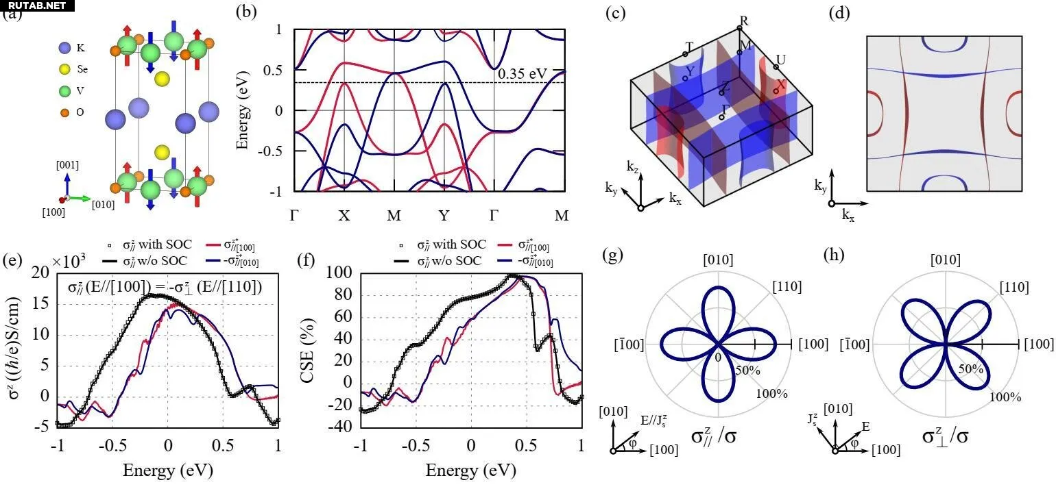 Кристаллическая структура, зонная структура и характеристики спинового тока KV₂Se₂O. Автор: IMR
