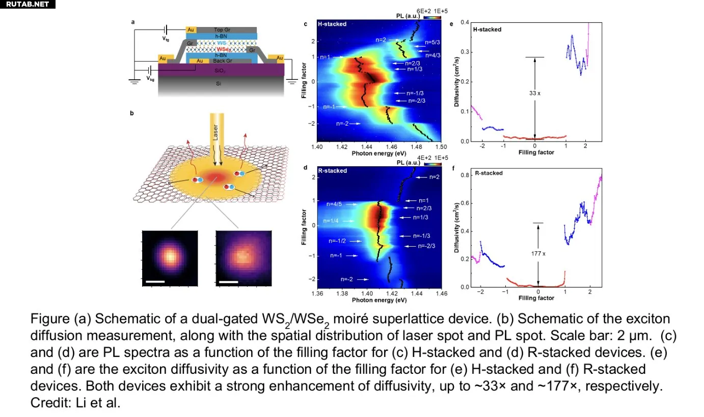 Больше информации: Li Yan et al, Anomalously enhanced diffusivity of moiré excitons via manipulating the interplay with correlated electrons, Nature Communications (2025). DOI: 10.1038/s41467-025-65602-5.