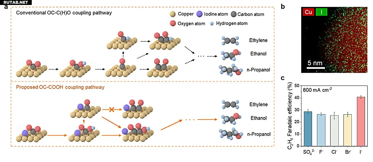 «Иодид-ионы удвоили селективность по этилену и, что важнее, значительно снизили требуемое перенапряжение по сравнению с электролитами без иодида», — пояснил старший автор работы, профессор Ли Янгуан.