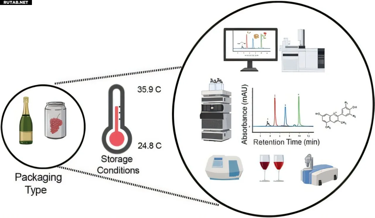 Команда поместила игристое красное мускадиновое вино в стеклянные бутылки и алюминиевые банки. Часть образцов хранилась при комнатной температуре в течение шести месяцев, а другая часть — при температуре около 36°C в течение месяца, чтобы имитировать условия хранения в жарком складе или багажнике автомобиля.