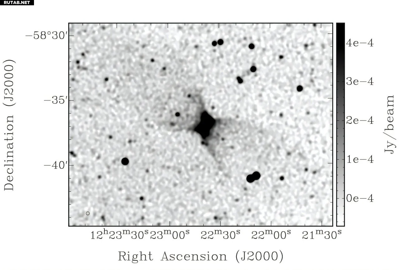 «Изучая глубокие радиоизображения ASKAP, мы обнаружили биполярный выброс, простирающийся как минимум на 6 угловых минут (∼30 килопарсек) выше и ниже звёздного диска ESO 130-G012», — пишут исследователи в статье.