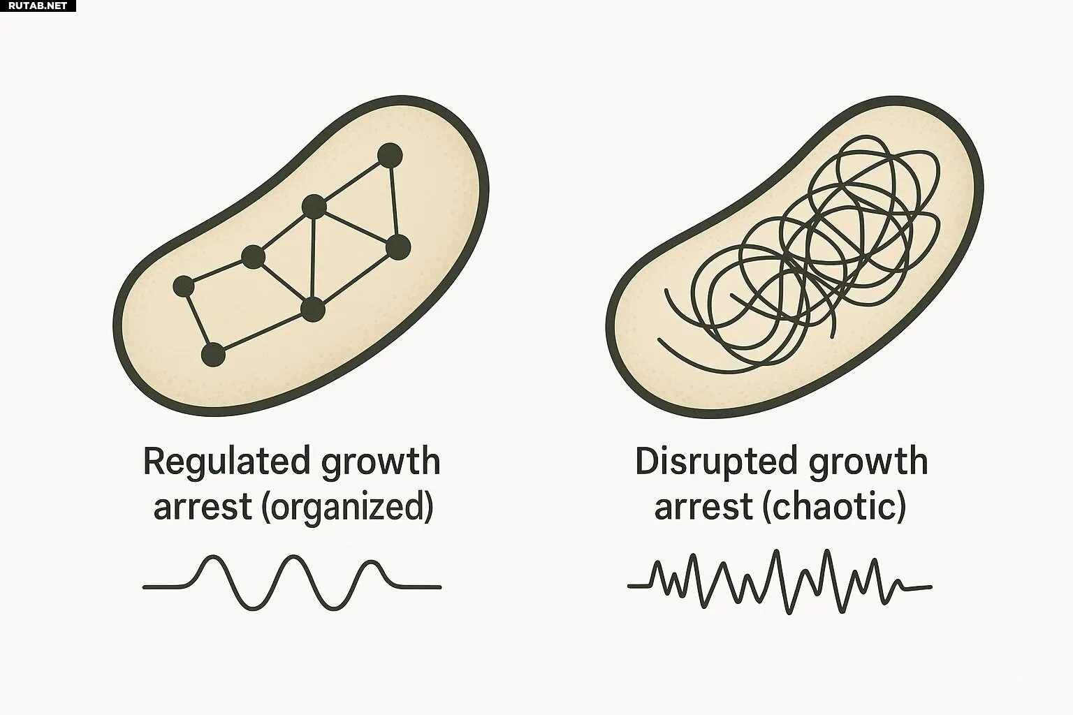 - Нарушенная остановка роста: выживание через сбой. Это не запланированное отключение, а потеря нормального клеточного контроля. У таких бактерий наблюдается широкое нарушение гомеостаза мембраны — ключевой функции для поддержания целостности клетки. Эта слабость может стать мишенью для лечения.