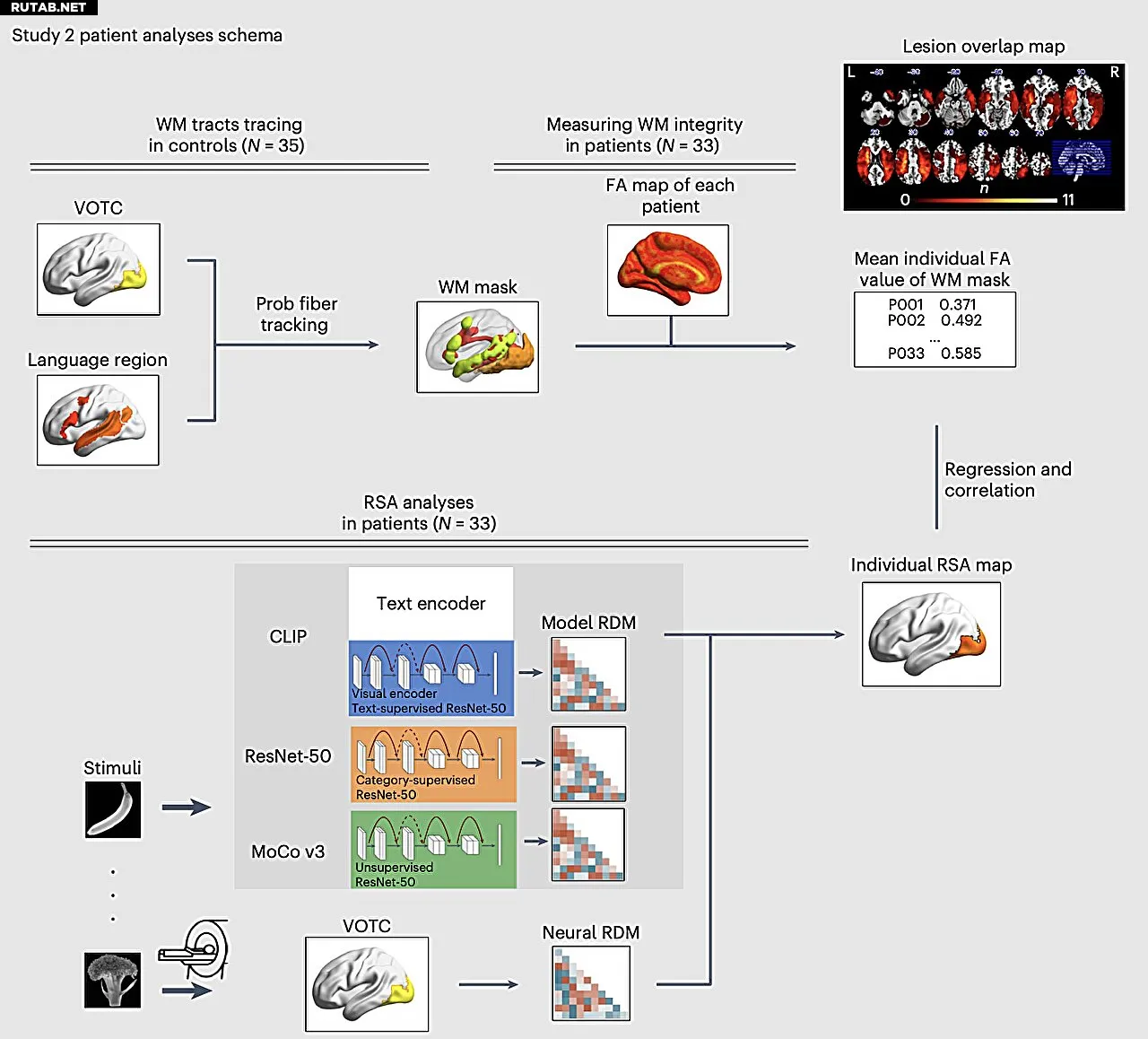«Снижение целостности белого вещества между VOTC и языковой областью в левой угловой извилине коррелировало с уменьшением соответствия CLIP–мозг и увеличением соответствия MoCo–мозг, что указывает на динамическое влияние языковой обработки на активность VOTC», — пишут исследователи.