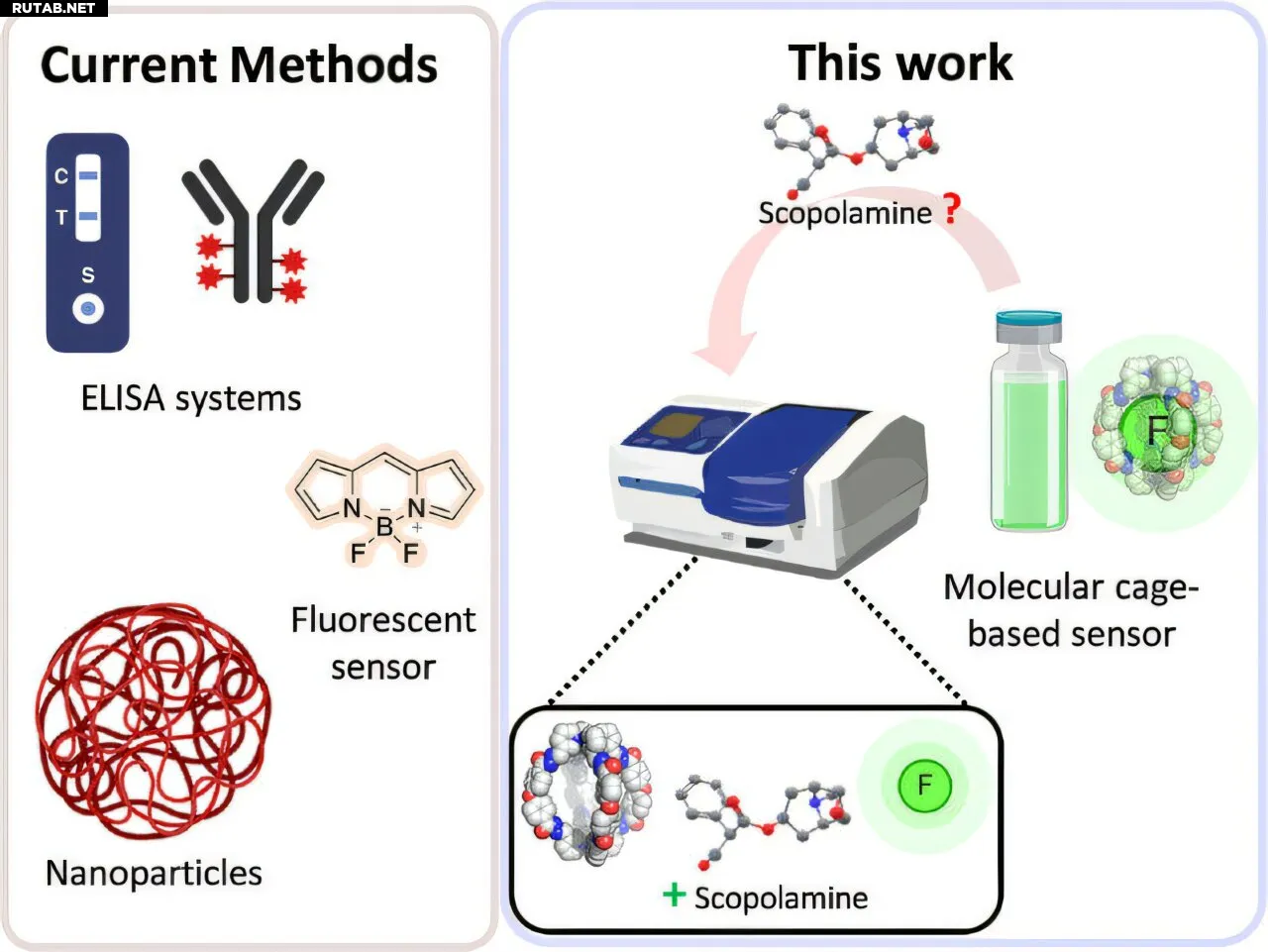 Сенсор основан на «молекулярной клетке» — химической структуре, предназначенной для распознавания и захвата специфических молекул. В данном случае клетка была разработана для высокоселективного взаимодействия и захвата скополамина.