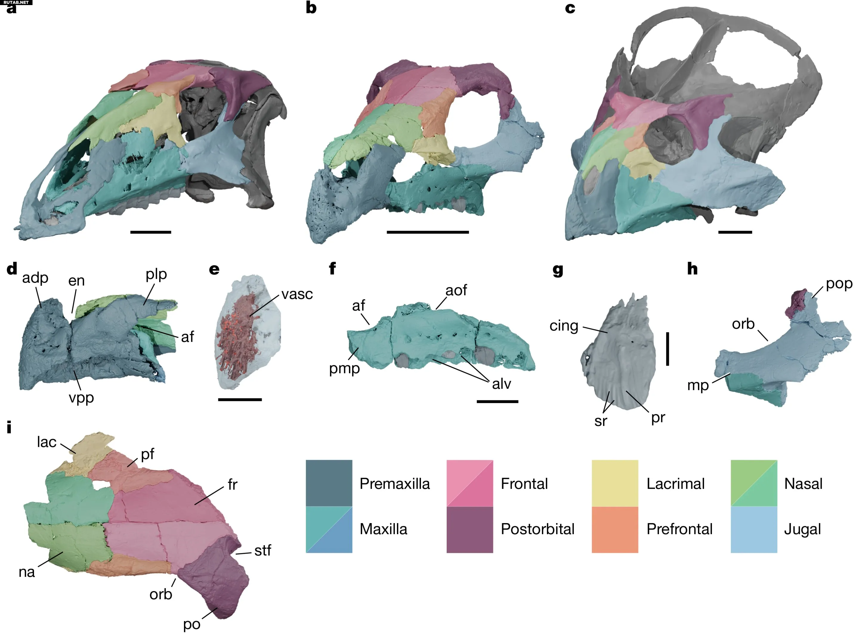 Элементы черепа MTM 2025.1.1, Ajkaceratops kozmai. Автор: Nature (2026). DOI: 10.1038/s41586-025-09897-w