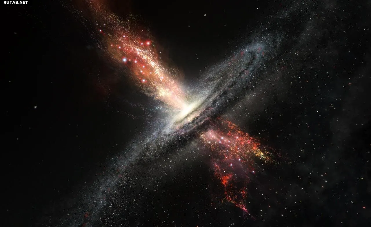 Художественное изображение галактики, формирующей звёзды в мощных выбросах из сверхмассивной чёрной дыры. Автор: ESO/M. Kornmesser, CC BY 4.0