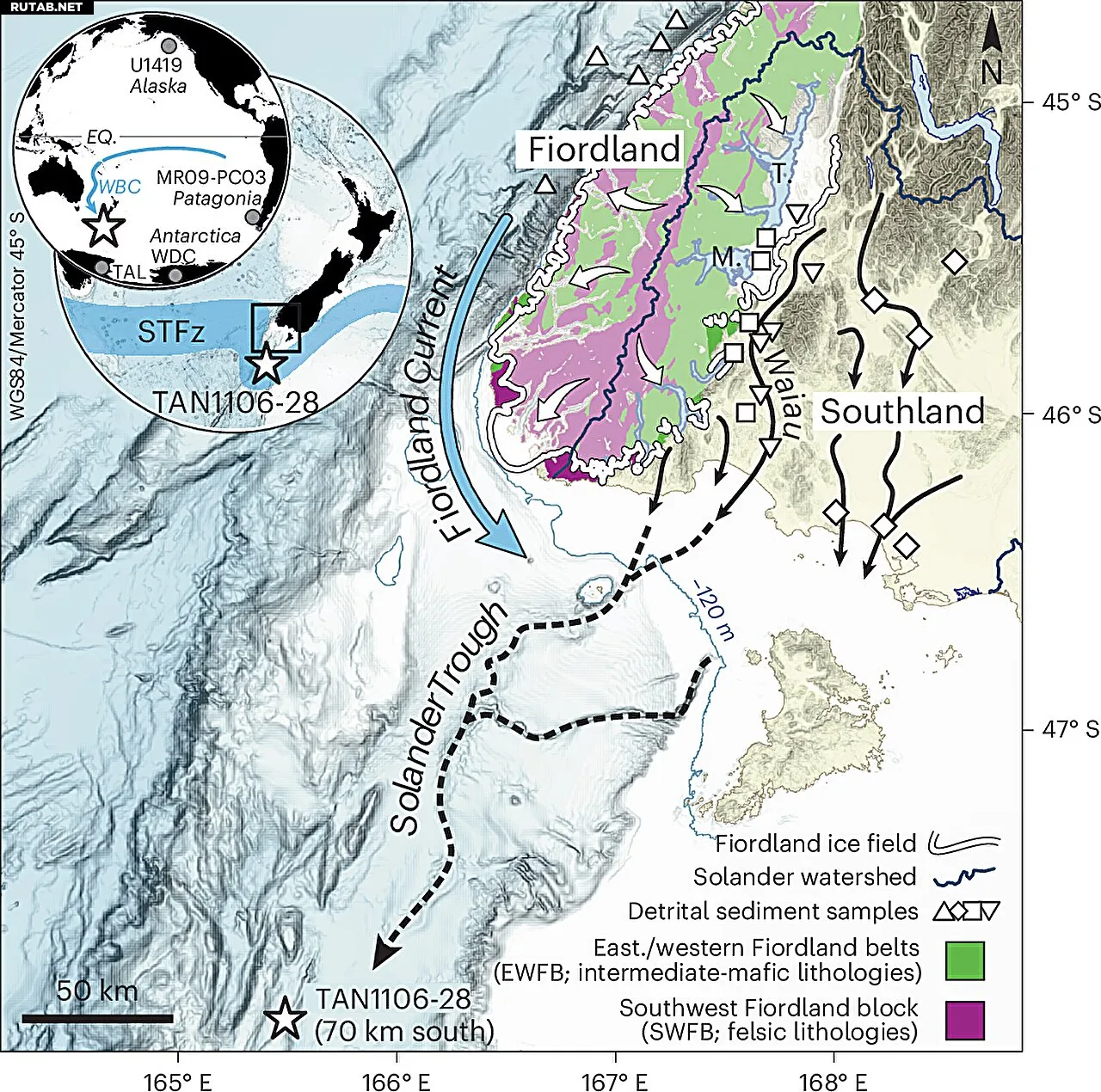 Исследователи из Университета Квинсленда, Французского исследовательского института эксплуатации моря (Ifremer), Национального института водных и атмосферных исследований Новой Зеландии (NIWA), Университета Нового Южного Уэльса, Института полярных и морских исследований имени Альфреда Вегенера и Национального центра научных исследований Франции (CNRS) создали первую полную запись колебаний ледников в Южных Альпах Новой Зеландии, проанализировав морской осадочный керн.
