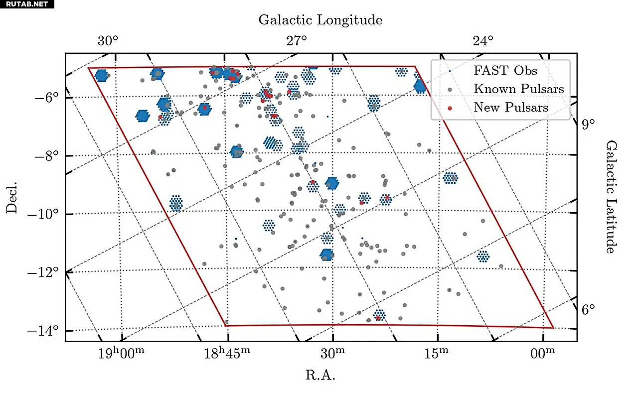 После тщательного изучения данных FAST команда Гао идентифицировала 19 пульсаров, о которых ранее не сообщалось. Они расположены на расстоянии от 5500 до 54 700 световых лет от Земли. Периоды вращения вновь обнаруженных пульсаров варьируются от 0,03 до 5,54 секунды. Только у двух из них, обозначенных PSR J1832−0901t и PSR J1843−0524t, периоды короче 0,1 секунды, что указывает на то, что они являются либо молодыми, не переработанными пульсарами, либо слабо переработанными двойными пульсарами.