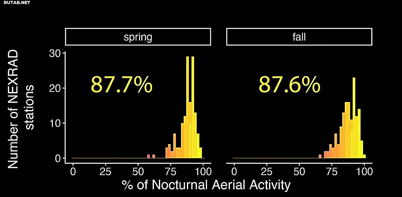 Учёные из Университета Пердью проанализировали более 100 миллионов радарных наблюдений сети NEXRAD за почти 30 лет. Они впервые получили континентальный обзор того, как животные используют небо в течение суток.
