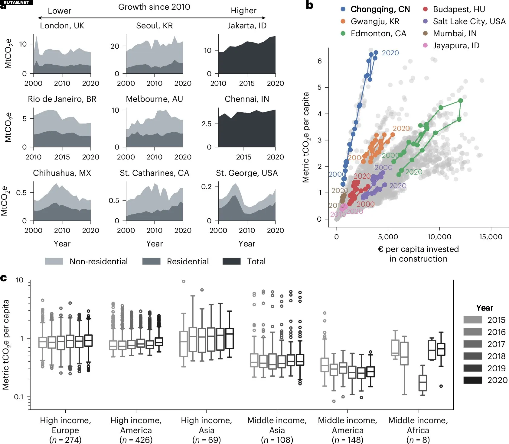 Тенденции строительных выбросов на душу населения. Автор: Nature Cities (2026). DOI: 10.1038/s44284-025-00379-8