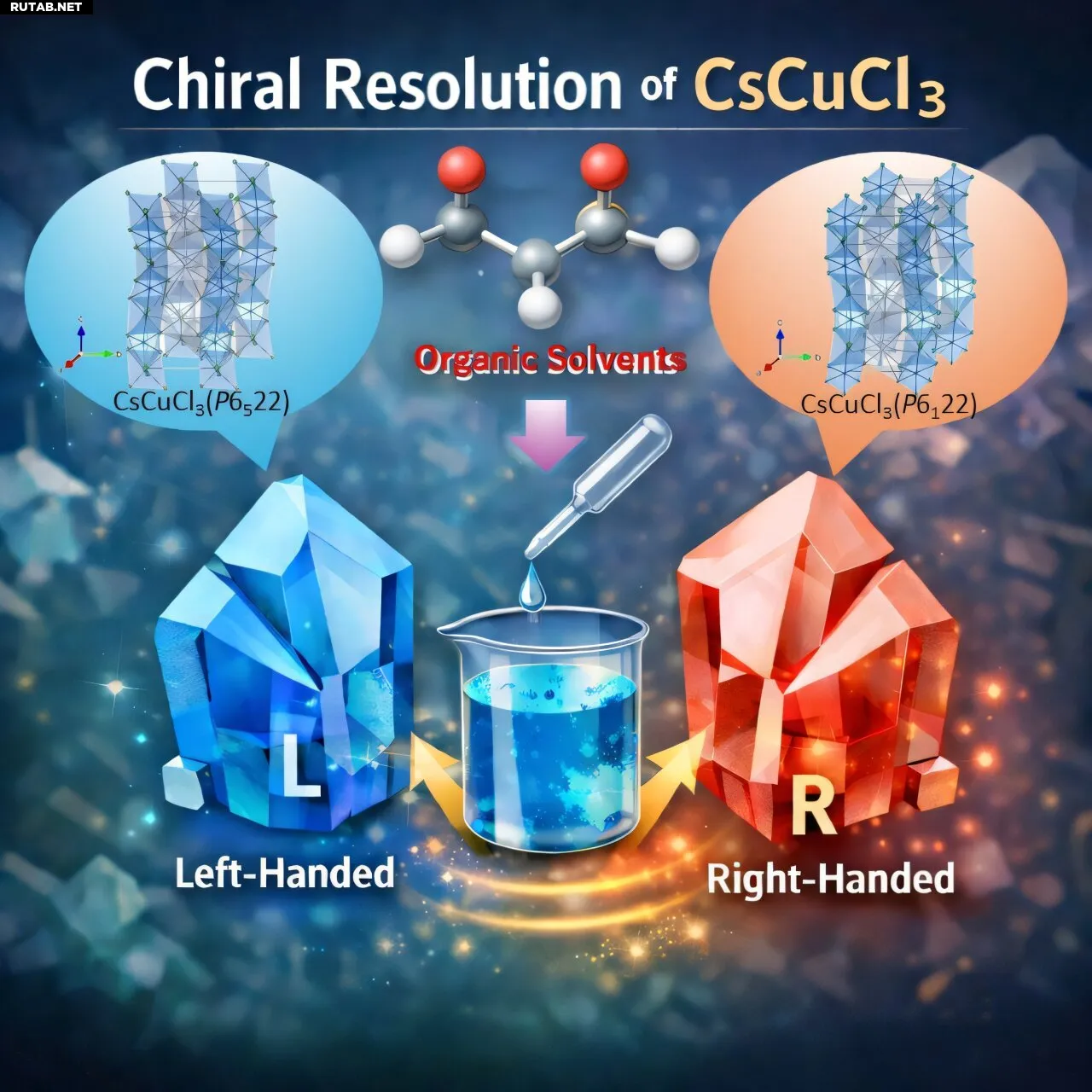Исследователи из Университета Кумамото продемонстрировали простой и эффективный способ управления «рукостью» неорганического кристалла с использованием органических растворителей и неожиданного кристаллического «помощника» — ахиральной кристаллической фазы. Их исследование, опубликованное в журнале Crystal Growth & Design, показывает, что хлорид цезия-меди (CsCuCl₃), известный своими уникальными магнитными и оптическими свойствами, можно кристаллизовать в формы с одной «рукостью» в относительно мягких условиях.