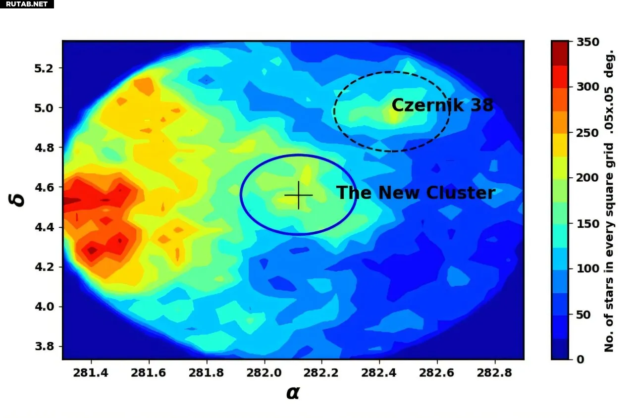Мы обнаружили сгусток звёзд, расположенный на координатах α = 282.11 ± 0.05 и δ = 4.56 ± 0.05, примерно в 32 угловых минутах от его центра. Мы предположили, что этот сгусток может представлять собой новое рассеянное звёздное скопление и подозреваем, что оно может быть компаньоном Черник 38, образуя двойное рассеянное скопление, — объясняют исследователи.