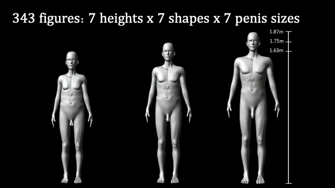 Чтобы изучить этот вопрос, исследователи попросили более 600 мужчин и 200 женщин оценить сгенерированные на компьютере мужские фигуры, которые различались ростом, телосложением и размером пениса.