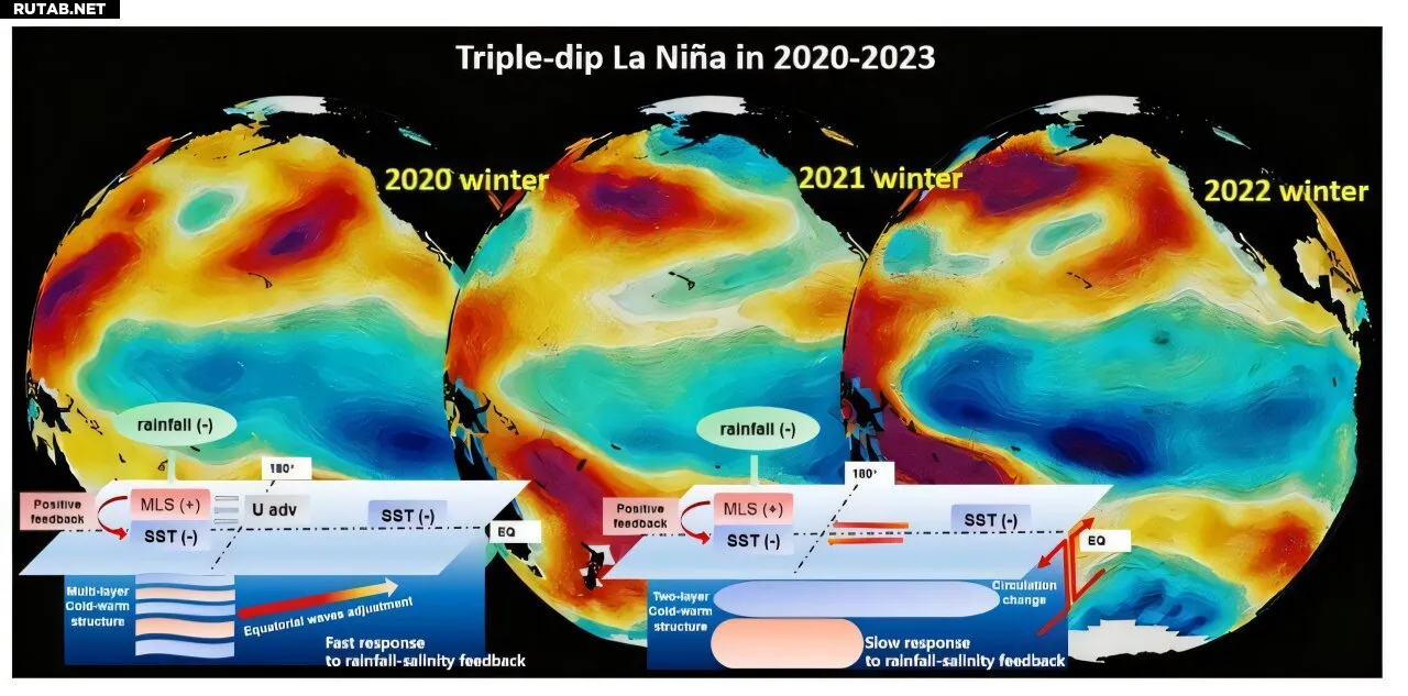 Чтобы восполнить этот пробел в знаниях, исследовательская группа из Института океанологии Китайской академии наук выявила критическую петлю обратной связи, связывающую осадки и солёность океана, которая помогает поддерживать условия Ла-Нинья в течение нескольких лет. Их выводы были опубликованы в журнале Nature Communications 14 января.