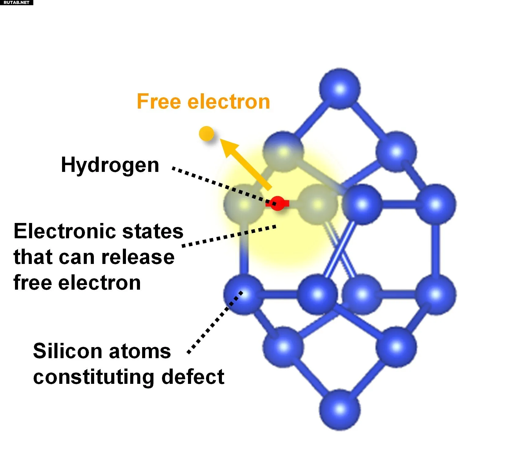 Механизм генерации свободных электронов водородом при взаимодействии с дефектом в кремнии. Автор: Mitsubishi Electric, Токийский научный институт, Университет Цукубы и Quemix