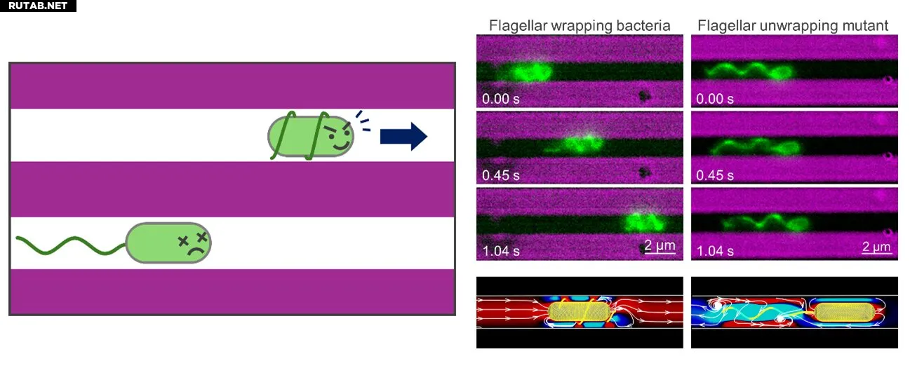 Чтобы визуализировать это замечательное движение, исследователи построили квазиодномерное микрофлюидное устройство, воспроизводящее геометрию «сортировочного органа» кишечника насекомого. Под микроскопом бактерии под названием Caballeronia insecticola наблюдались плавно продвигающимися через узкие каналы, многократно оборачивая и разворачивая свои жгутики. В отличие от них, родственные виды, не способные выполнять это обёртывание, оставались застрявшими.