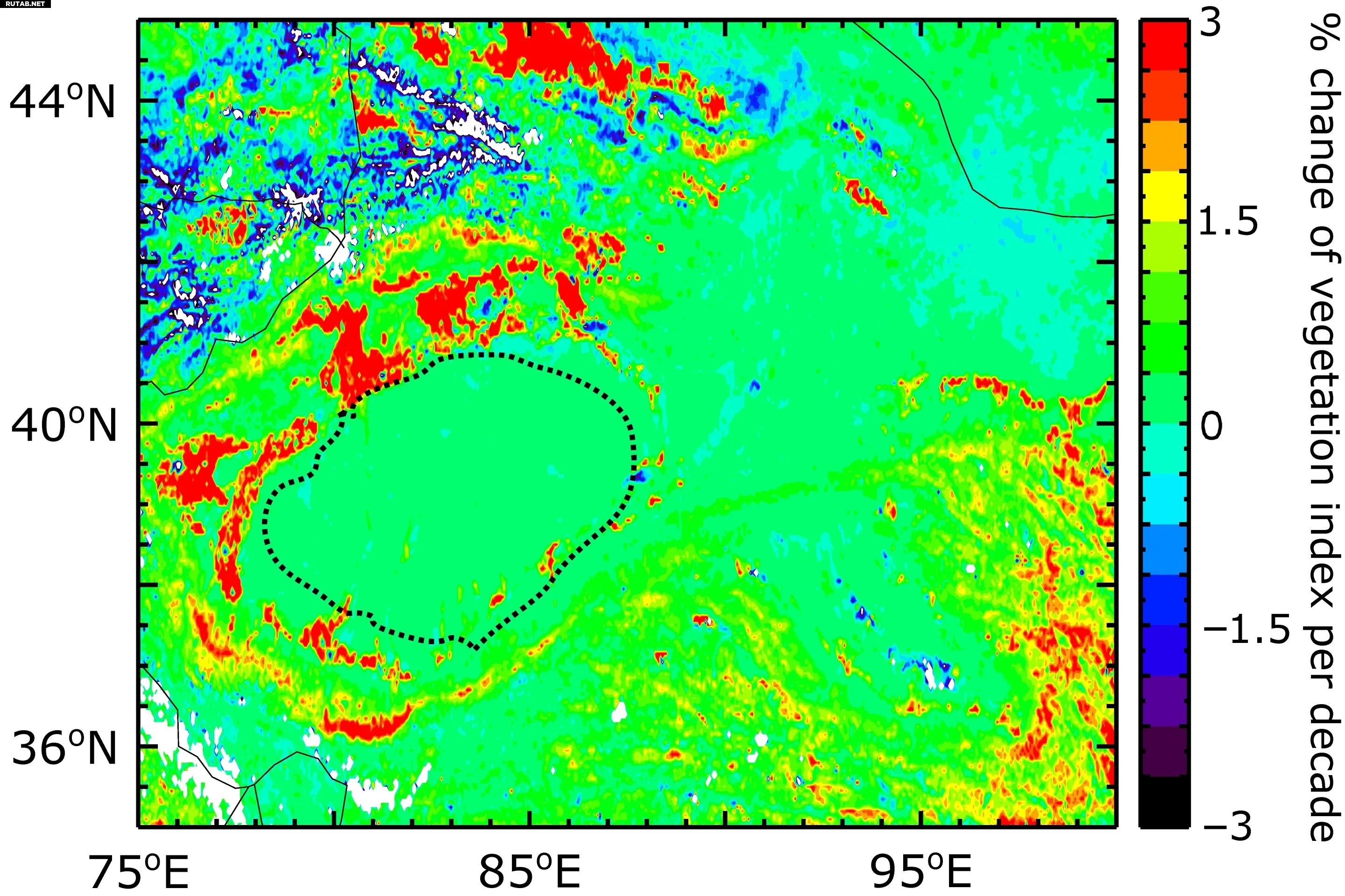 Китайские власти начали высаживать выносливые кустарники по краям пустыни в 1978 году, чтобы остановить её расширение. Исследователи наблюдали два ключевых показателя успеха: снижение концентрации CO₂ в атмосфере и рост солнечно-индуцированной флуоресценции — свечения, возникающего при фотосинтезе, которое указывает на активность растительности.