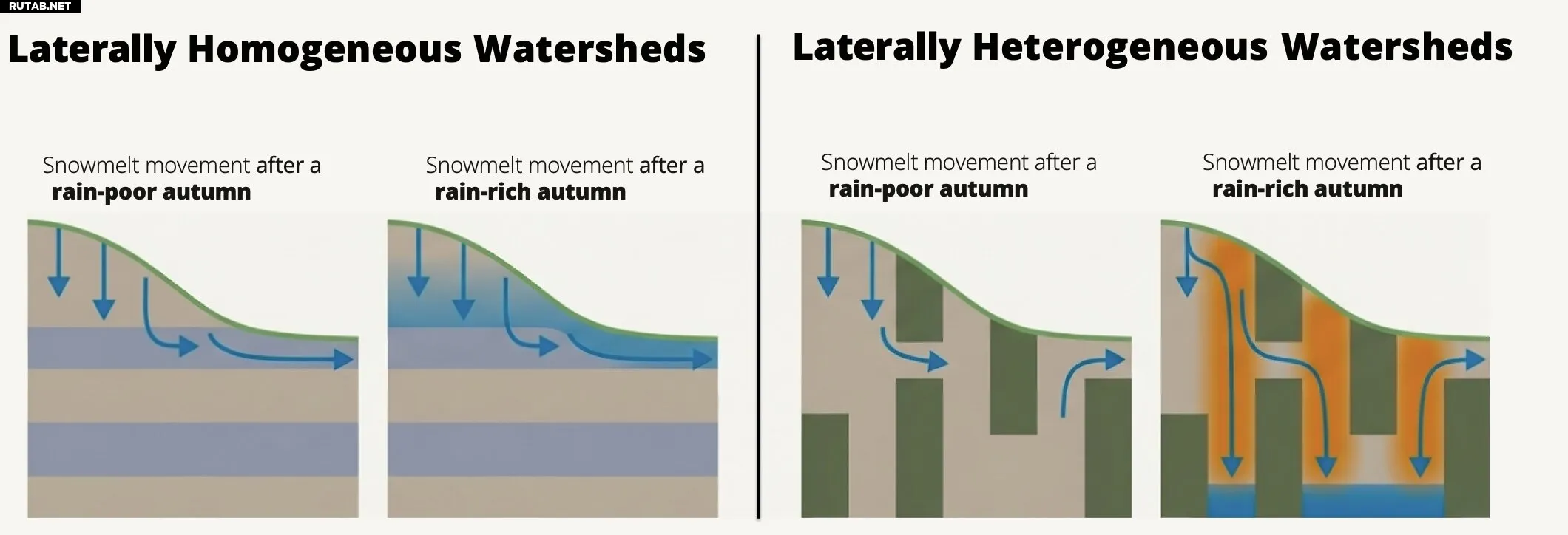 Таким образом, подземная неоднородность действует как усилитель климата. Водоразделы с переменной подземной структурой более чувствительны к климатическим колебаниям, и один влажный или сухой сезон может коренным образом изменить их поведение на месяцы вперёд.
