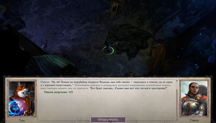 После этого к вам подойдут Вендуаг и Ланн. Поговорите и они присоединятся к вашей группе. Подойдите к завалу и используйте интерактивный значок, чтобы преодолеть его.