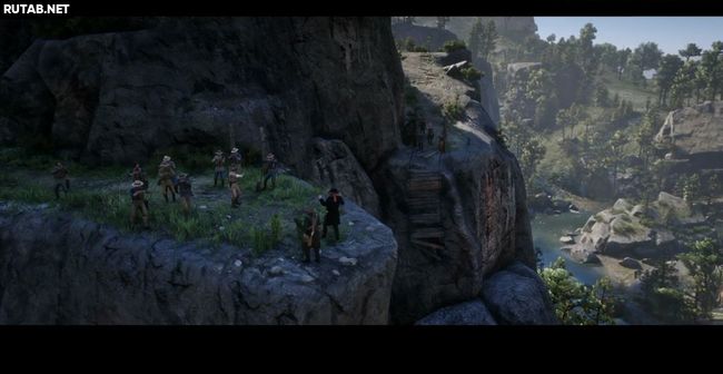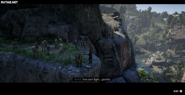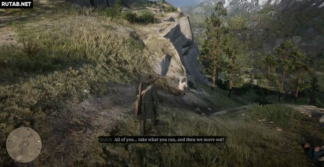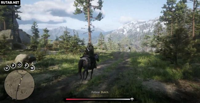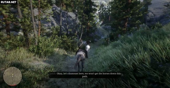 Через некоторое время Датч скажет вам спешиться. Продолжайте следовать за ним пешком.