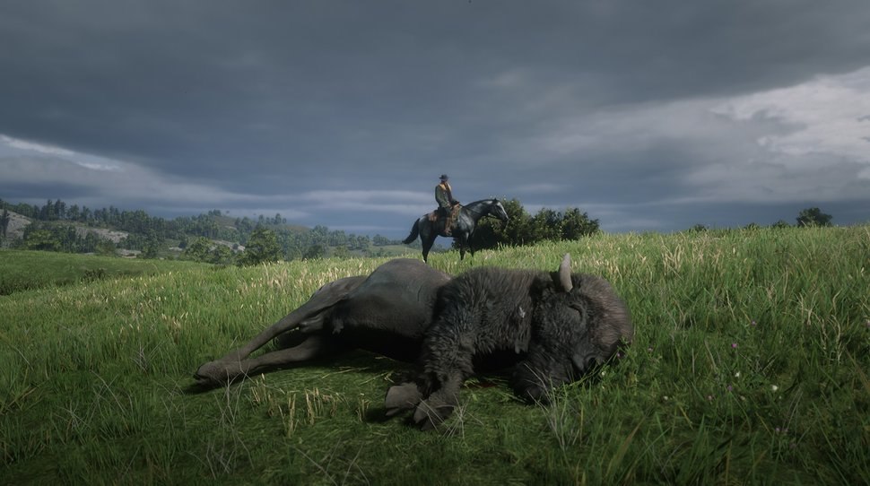 Да, анимация вырезания шкуры с туши животных реализована фантастически, но вот в онлайне она может сыграть злую шутку, ведь так вас легко пристрелить. Чтобы быстро забрать шкуру и не дать проиграть анимации, поставьте вашу лошадь вплотную к туше. Слезьте с коня и освежуйте убитое животное.