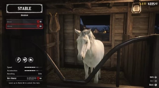 Вот и она – самая дорогая лошадь в Red Dead Online. Эта красавица представлена в игре в двух вариациях окрасов, каждый из них опустошит ваш кошелек на умопомрачительную сумму в 950 долларов, но если у Вас завалялись лишние деньги, то, уверяю Вас, скорость и выносливость этой лошади не знают себе равных. Даже в том случае если денег нет, на такую лошадь стоит попробовать накопить – это знатно облегчит Вашу жизнь. Но не стоит забывать, что помимо ценового барьера, Вы не сможете приобрести её до тех пор, пока не достигните минимум 58ого ранга. Да, возможно вам придется поездить еще пару десятков часов на той, доживающей свой срок хрипящей кляче, но ведь главное знать, к чему стремиться, правильно?