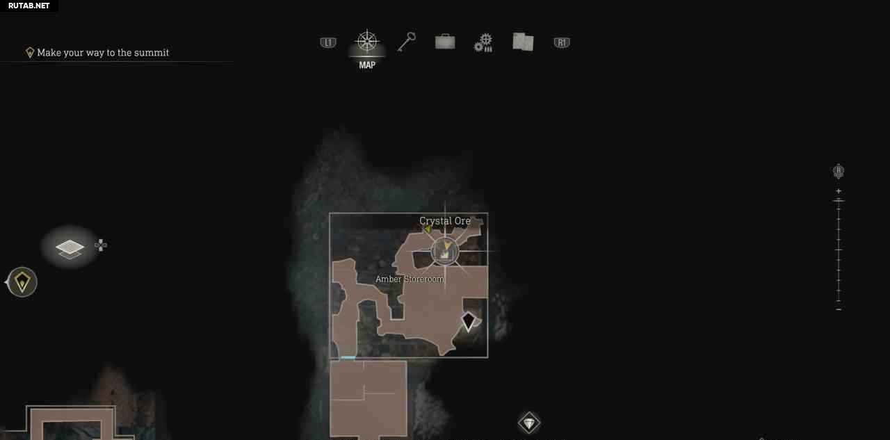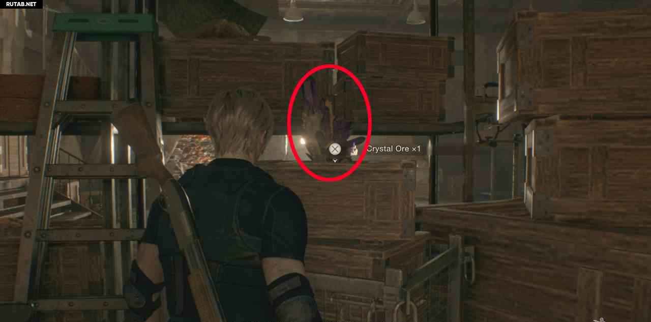 Продолжайте рассказ, пока не доберетесь до Янтарной кладовой (склад с большим количеством больших камней). На севере этой комнаты лежит кристаллическая руда на деревянном ящике.